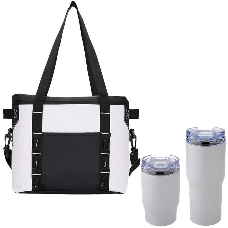 Features the Urban Peak® 20 oz (SL234PR) and 3-in-1 Tumbler (SL238PR) packaged inside the Urban Peak® Waterproof 12 Can Hinge Cooler (CB161), 1-Year Limited Warranty, SL238PR 3-in-1 and 20 oz SL234PR Patented, Drinkware constructed of Stainless Steel, double wall copper-lined vacuum insulation with powder-coat finish, Cooler bag constructed of rugged waterproof 55C PVC Mesh Tarpaulin,