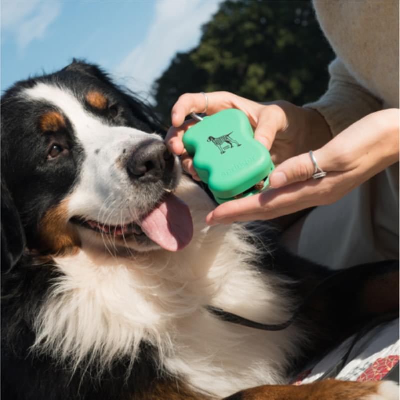 Uniquely shaped for effortless squeezing, this food-grade silicone dog treat dispenser allows you to easily dispense a few treats at a time, making it an essential accessory for walks, training, and on the go rewards. Simply squeeze to dispense dog treats! To fill, squeeze the dispenser with the slit facing up and add kibble or treats to keep your pup motivated and delighted.