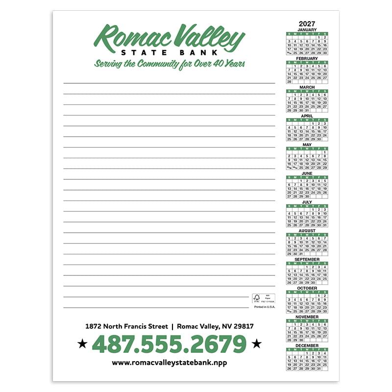 This conveniently-sized 50-sheet scratch pad is perfect for note-taking, planning, and more. Each sheet displays the full calendar year, so you’ll always know the date. The FSC® label means that the materials used for this product come from well-managed FSC®-certified forests and other controlled sources.
