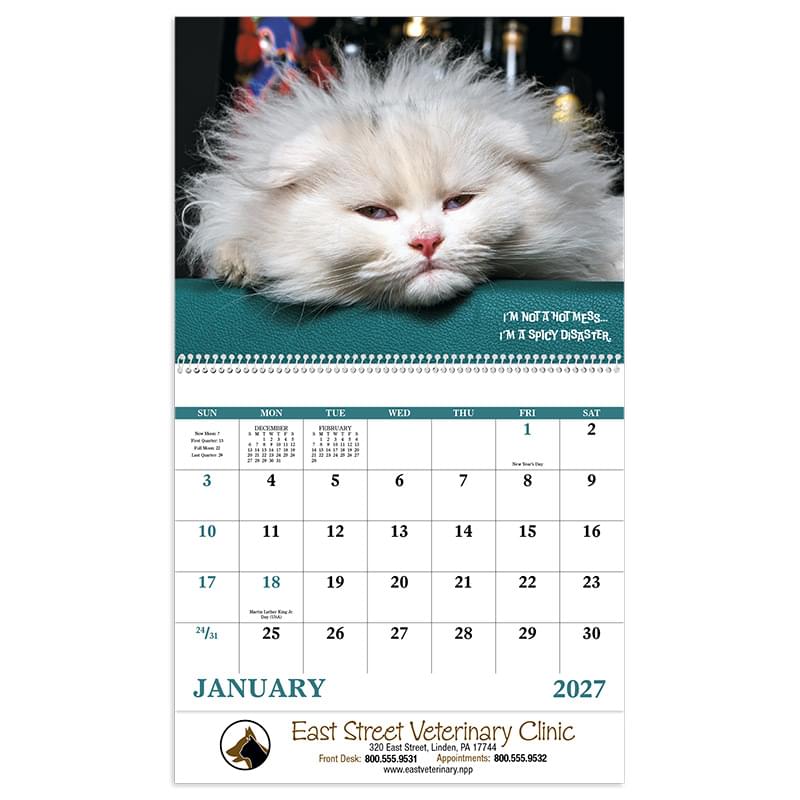 Get ready for a year of entertainment with a funny animal calendar sure to keep you grinning month after month. The FSCĀ® label means that the materials used for this product come from well-managed FSCĀ®-certified forests and other controlled sources.