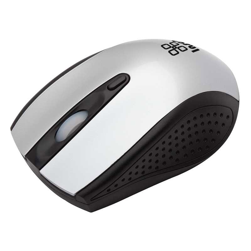 2.4GHz wireless mouse with 3 button function, scroll wheel, USB receiver stores in mouse body.