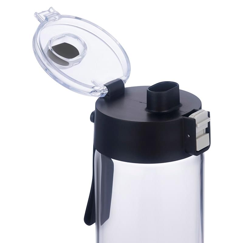 - Spill-resistant, push-button lid features a locking flip-top spout for secure sipping