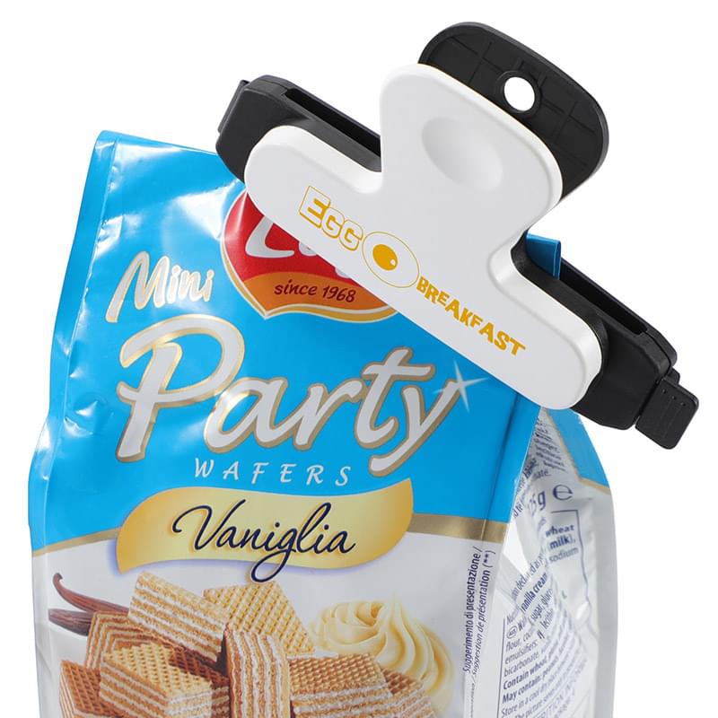 - Made of durable ABS plastic for long-lasting use - strong snap-lock design securely seals opened food bags - Keeps chips, snacks, coffee, and pantry items fresh - Easy to open and close with a firm grip - compact and lightweight for everyday convenience - smooth surface ideal for custom branding or logos - Great for home, office, school, and travel use - non-Magnetic design for a clean, simple finish